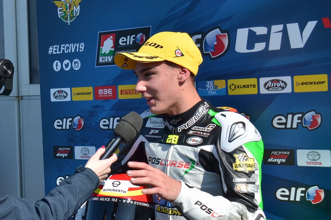 Adriàn Carrasco dopo aver chiuso la Gara 2 di Misano al terzo posto. Credit: Pos Corse. Quest'anno l'ELF CIV…